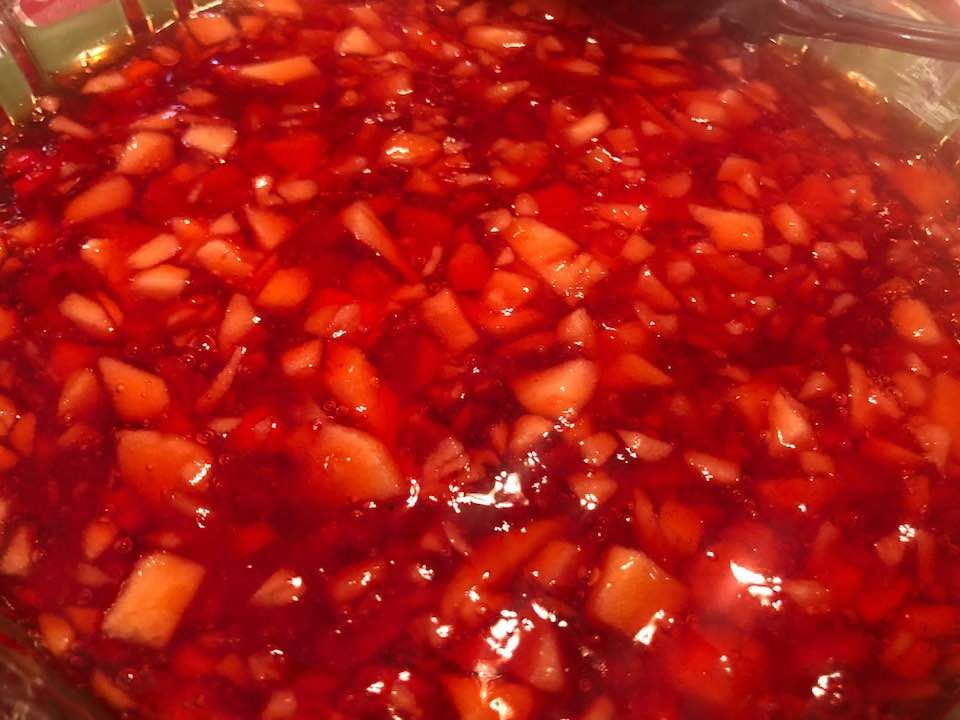 - When apples are settled into the jello and not just floating on the top, stir once more