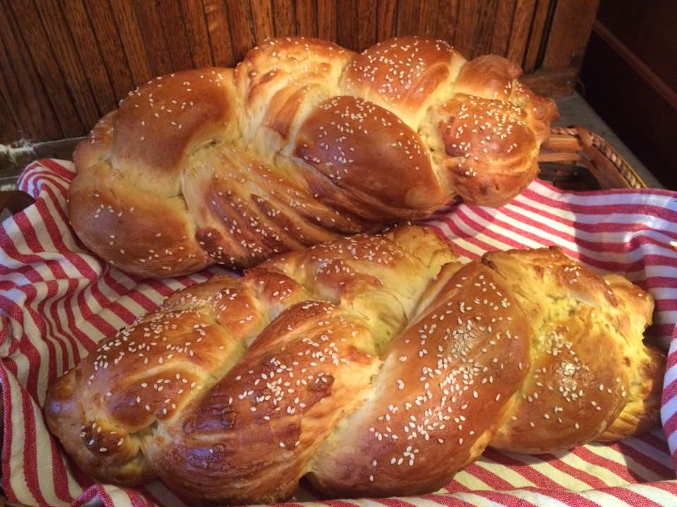 I mixed this up in my Bosch Mixer and it was simple enough. Kids will enjoy helping to “braid” the bread. The glaze of egg and water helps give it a golden glow, and the sesame seeds on the top help give it added appeal.