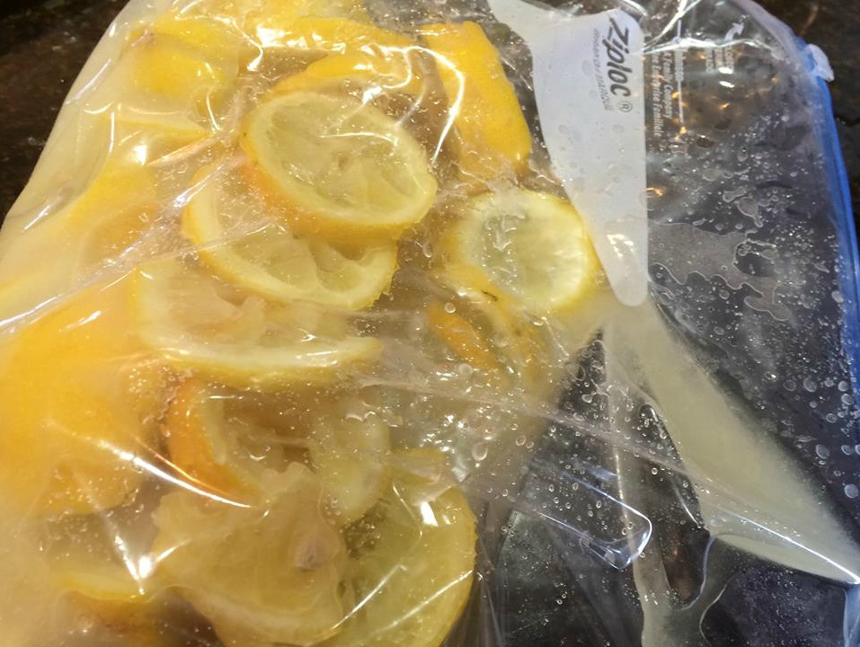 - Slice the lemons and put into container