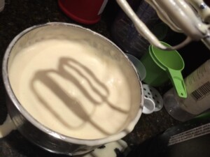 Put the evaporated milk into the freezer or refrigerator until it is cold and chilled. To help speed the process in mixing the milk, you can put the bowl and beaters into the refrigerator to chill. Mix the evaporated milk until it becomes whipped.