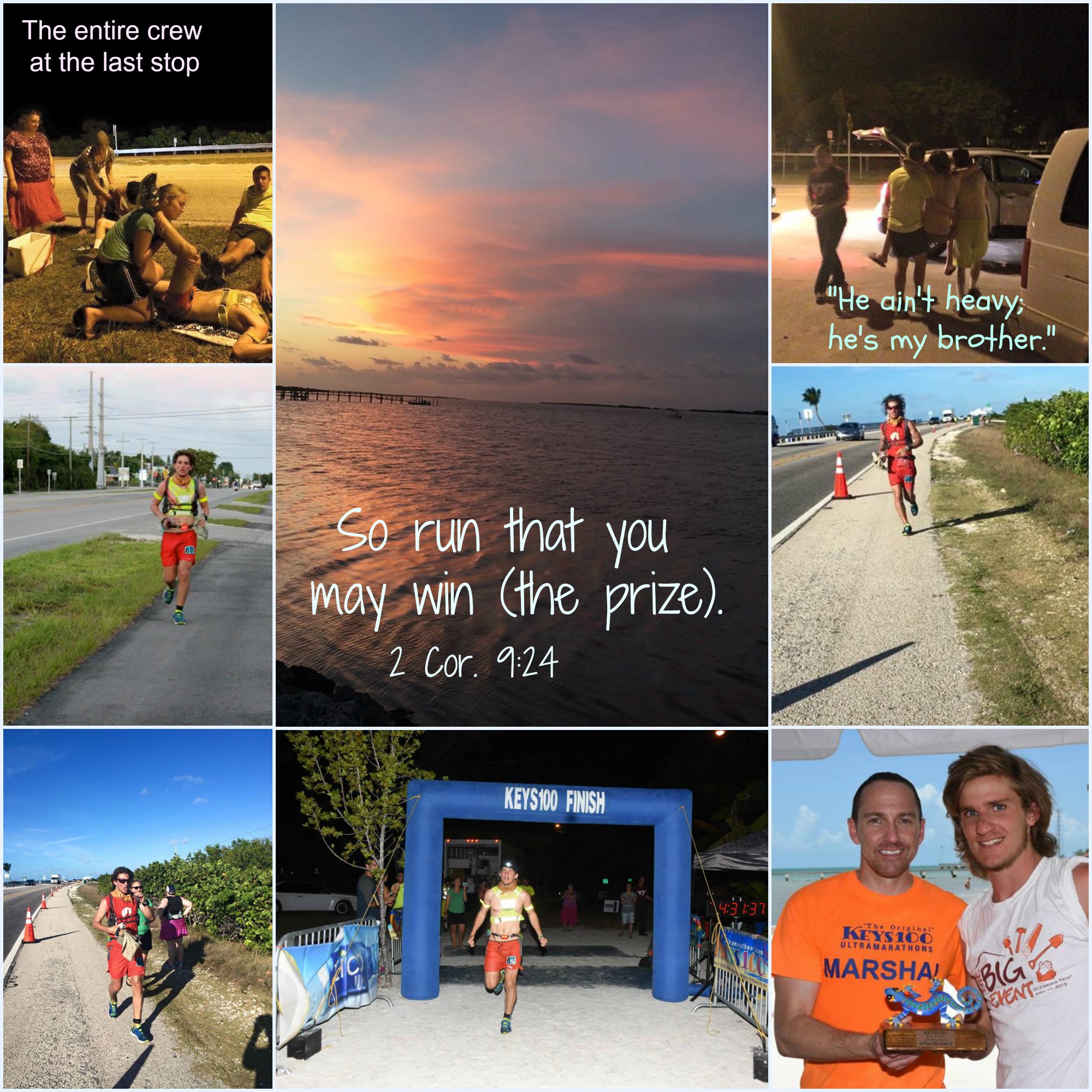 Ultra marathon running is primarily a sport of middle-aged and older people.  At nineteen, Butch was the youngest participant.  For this Florida Keys race, any runner under twenty-one years of age had to have an official support crew traveling the course with him.  One vehicle served as his official crew. The other did behind-the-scenes running for ice, more Powerade, Mountain Dew, and a Styrofoam cooler to replace the one that broke.  We ordered pizza and delivered it to a rest stop for the support crew.  And we prayed.  A lot.