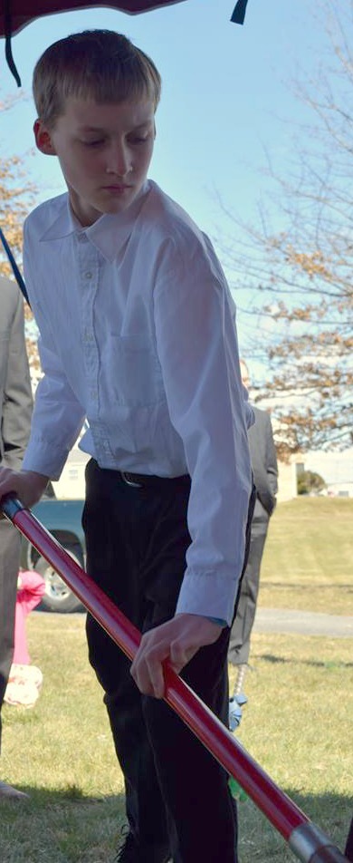 Great-grandsons, nephews, granddaughters and great-granddaughters took turns, and a nephew stepped into the grave to continue tamping.